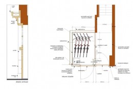 Bovenlichten brengen een zee van licht in de entree en de berging. De berging is via een schuifdeur bereikbaar vanuit de entree. Boven de fietsen komt een plank voor aanvullende opbergruimte. In de stijl tussen de deuren wordt een brievengleuf gefreesd voor de achtergelegen postkast. Een hardhouten plint voorkomt beschading en vervuiling van het stucwerk.