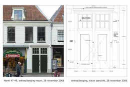 De historische analyse biedt inspiratie het pand weer met één been terug te plaatsen op de markt. In plaats van de oorspronkelijke gevelindeling (een monumentale voordeur) terug te brengen wordt gekozen voor een dubbele deur. Op deze manier kan naast de voordeur een berging worden toegevoegd.