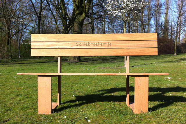 Dat leidde tot de ontdekking dat een bankje in de moestuin, maar ook in de voor- of achtertuin een eenvoudige, informele aanleiding kan zijn voor een gesprek met medetuinders of de buren. Het BUURbankje, en in dit geval het Schiebroekertje was geboren.